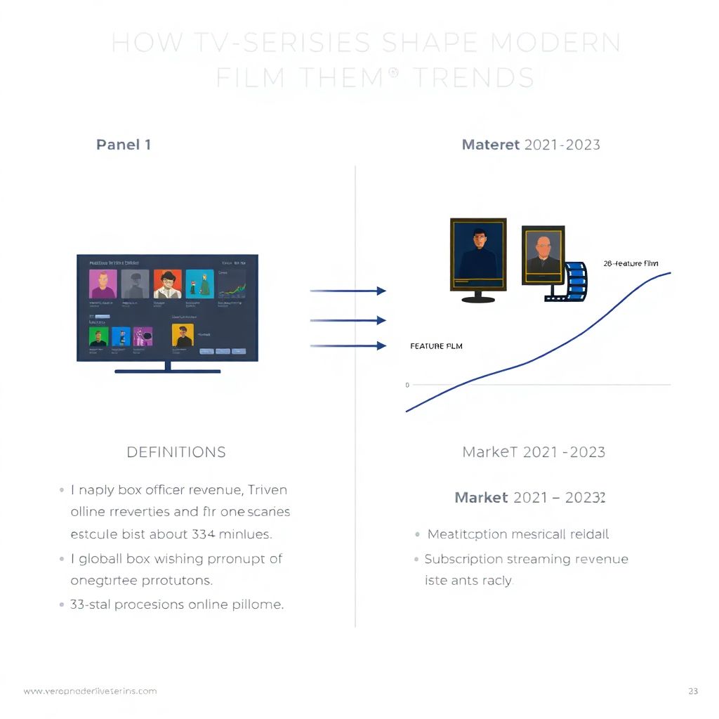 За последние три года (2021–2023) баланс сил между сериалами и полнометражным кино количественно сместился в сторону сериалов, хотя кассовые сборы фильмов частично восстановились после пандемийного провала. По данным отраслевых аналитических компаний, глобальный кинопрокат вырос примерно с 21–22 млрд долларов в 2021 году до порядка 33–34 млрд долларов к концу 2023 года, но так и не достиг допандемийного уровня около 42 млрд. Одновременно совокупные расходы домохозяйств на подписку на онлайн‑кинотеатр с новыми сериалами и фильмами увеличивались ежегодно двузначными темпами: аудитория только ведущих стримингов превысила 1 млрд платных аккаунтов, а среднее время просмотра сериалов в онлайне выросло по оценкам на 15–20 % за период 2021–2023 гг. Диаграмма 1 (текстовое описание): восстанавливающаяся, но все еще не полностью отыгравшая падение линия кассовых сборов фильмов и постоянно растущая, более крутая линия подписного стриминга, где сериальная часть занимает уже более половины совокупного просмотра.